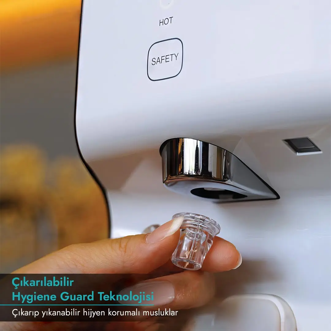 The removable hygiene guard facilitates cleaning of the flow area of your 1600 water dispenser.
