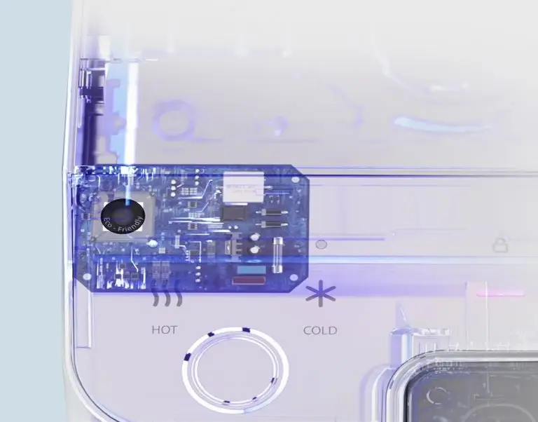 Instantly distributes 4 temperatures at the touch of a button. 4°C – cold water, 20°C – room temperature, 85°C – hot water suitable for your coffee, 95°C – the best temperature for making noodles!